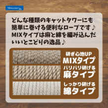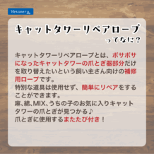 items 商品紹介 NN-106 nekoneru キャットタワーリペアロープ 綿 猫用 用品 ボサボサになりにくく長持ちなので 頻繁に巻きなおす必要なし! 内容量450g 規格太さ6㎜×長さ20m 原材料 綿100% 原産国バングラデシュ 商品サイズ 幅×奥行×高さmm(単品)150×150×60 重量g(単品)400 ケースサイズ 幅×奥行×高さmm(ケース)420×570×260 重量g(ケース)15600 ケース入数36 JAN4904879009637 ITF14904879009634 ペットライブラリー株式会社 関連会社「あにまるキャンパス」へ移動します 関連商品 固まるおからの猫砂 7L 詳しく見る 猫のつめみがき 詳しく見る システムトイレ用シート 22枚 詳しく見る またたび 5g 詳しく見る nekoneruの商品一覧へ戻る CONTACT お問い合わせはお気軽にどうぞ お問い合わせフォーム 営業時間:9:00-12:00 / 13:00-17:00(土日祝を除く)