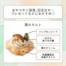 ケーキの定番モンブランをタルトにのせ、大きな渋皮付きの栗をのせました。乳酸菌配合。