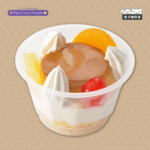 乳等を主要原料とする食品、液鶏卵、パイナップルシロップ漬け、みかんシロップ漬け、ドレンチェリー、砂糖、カラメルソース、加糖卵黄、上新粉、粉末油脂、マーガリン、砂糖混合異性化液糖/乳化剤、香料、pH調整剤、カゼインNa、膨張剤、安定剤(増粘多糖類)、酸味料、着色料(カロテン、赤102、黄5)、(一部に乳成分・卵・大豆を含む)
